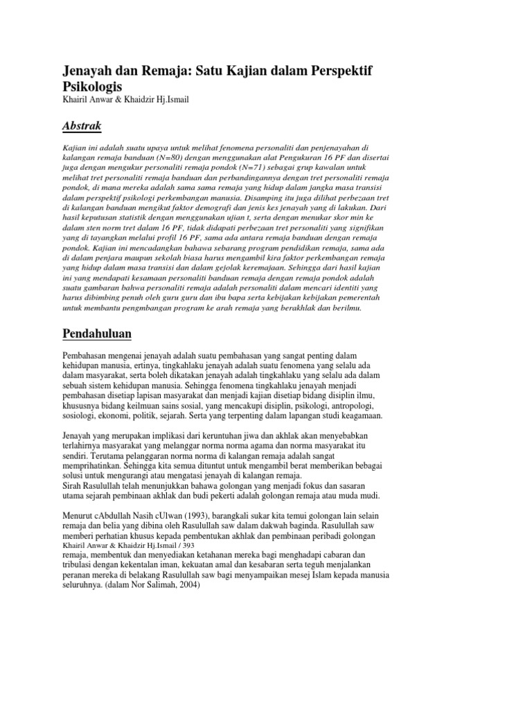 Pdf Jenayah Dan Masalah Sosial Di Kalangan Remaja Cabaran Dan