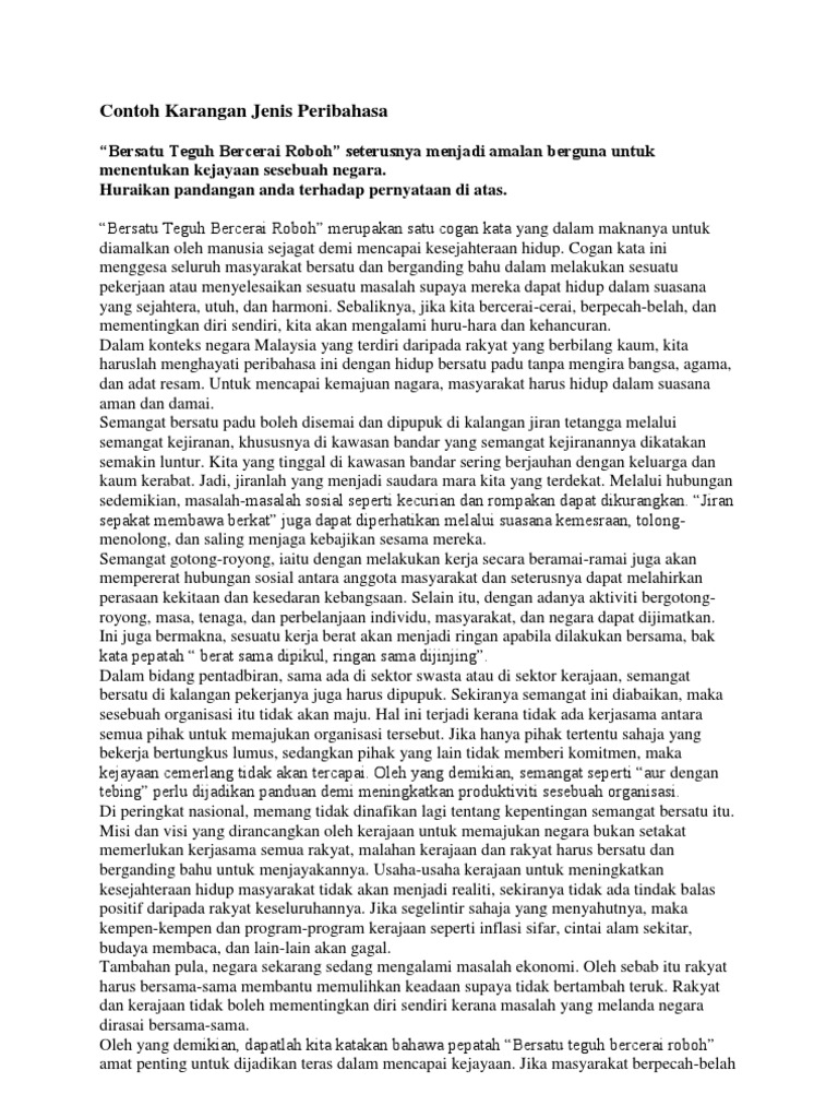 Bersatu Teguh Bercerai Roboh Contoh Karangan