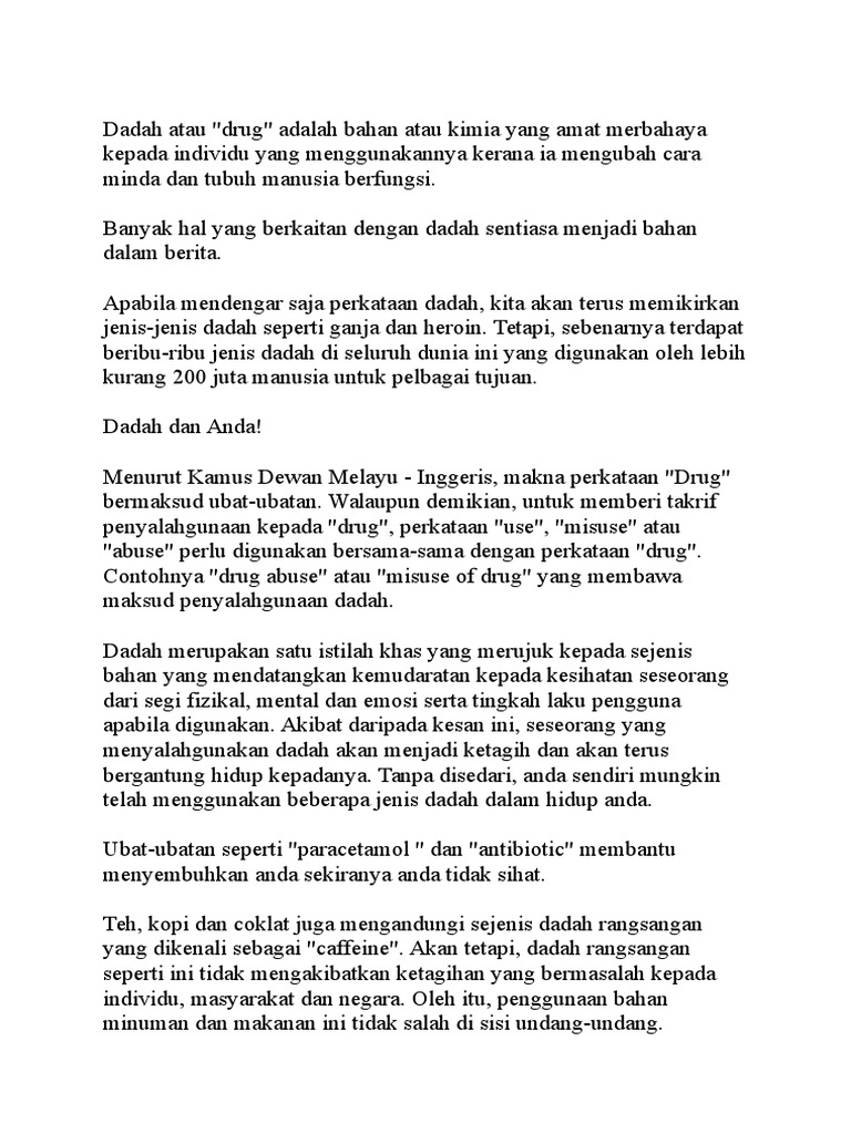 Karangan Kesan Penyalahgunaan Dadah Dan Alkohol