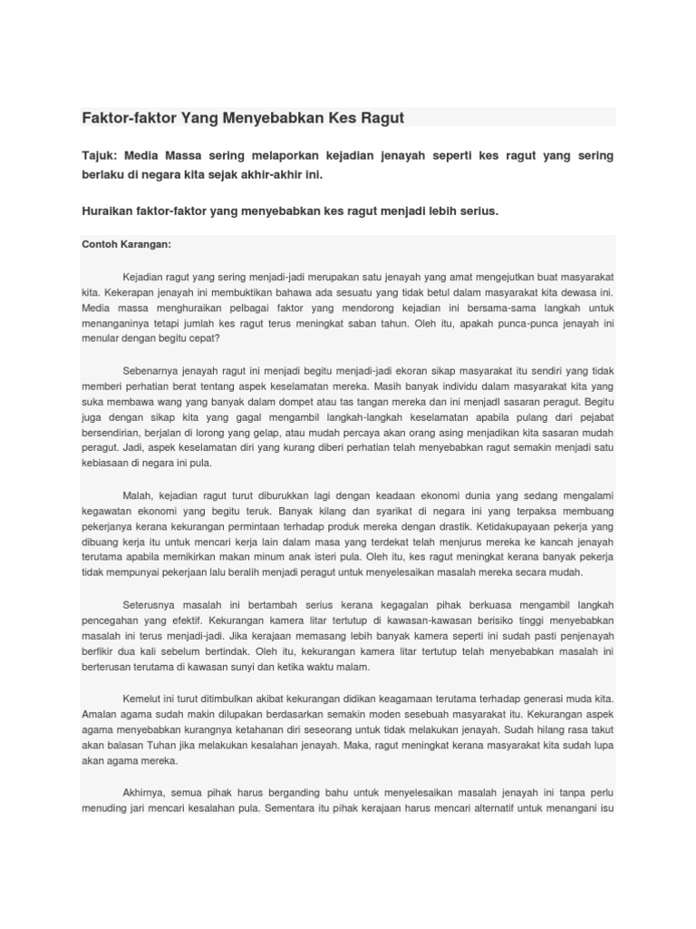 N Karangan Spm 2013 Kes Ragut Terus Berleluasa Kerana