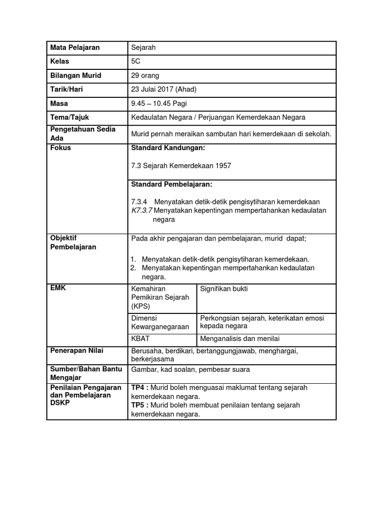 Rph Sejarah Tahun 5 Detik Detik Pengisytiharan