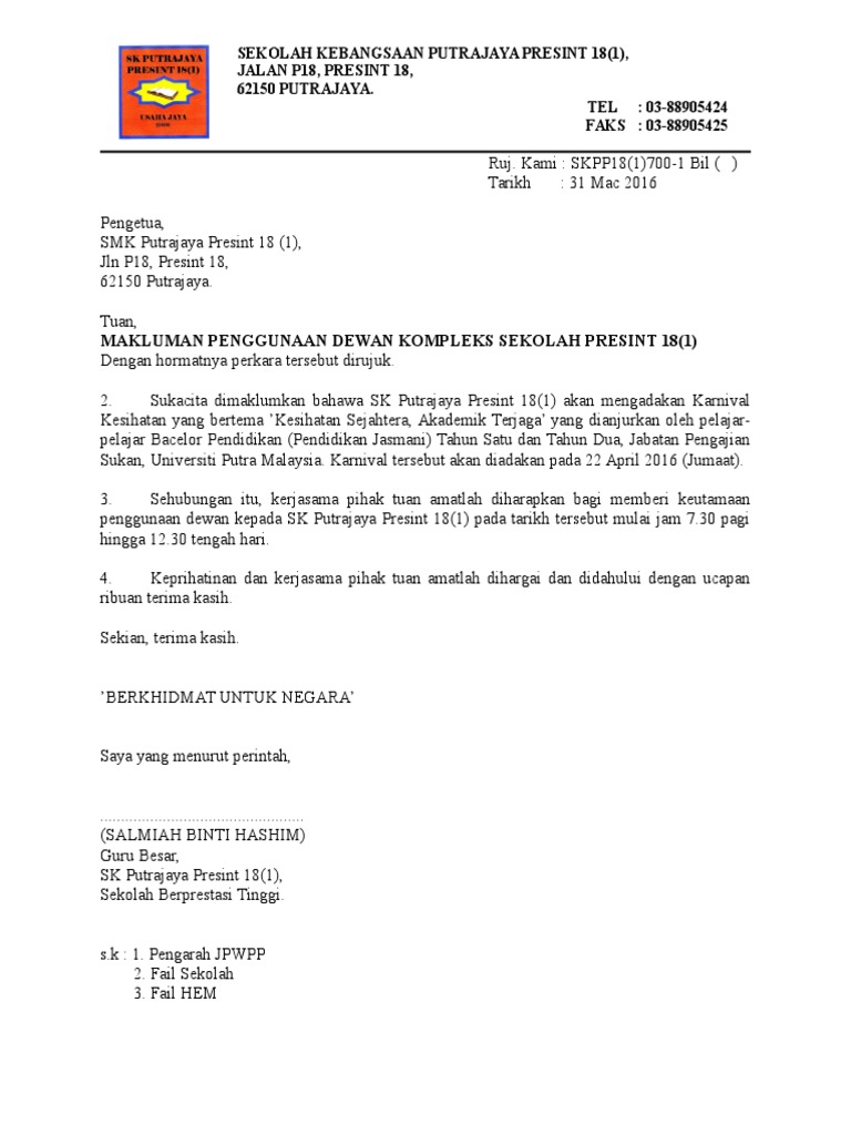 Makluman Penggunaan Dewan Kompleks Sekolah Presint 18 1