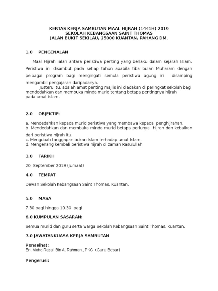 Contoh Kertas Kerja Maal Hijrah Urasmi