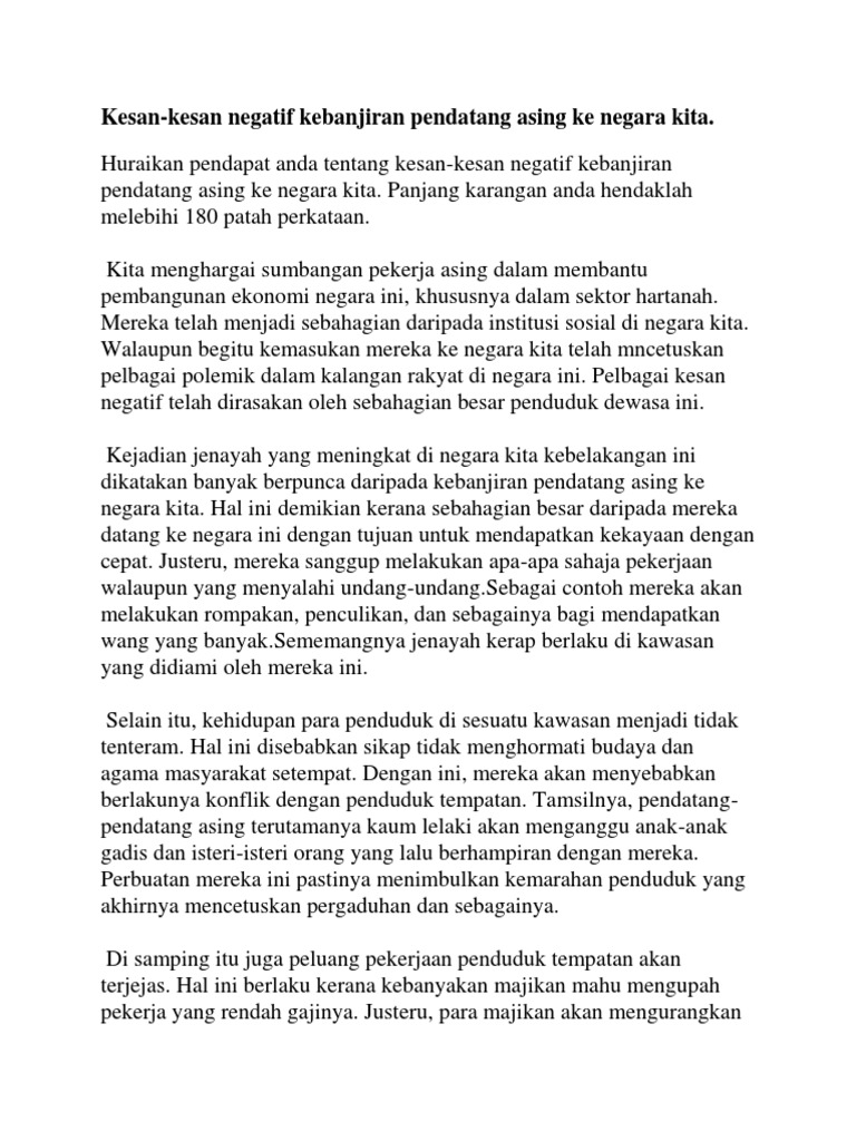 Kesan Kesan Kemasukan Pendatang Asing Tanpa Izin Kepada Rakyat Dan