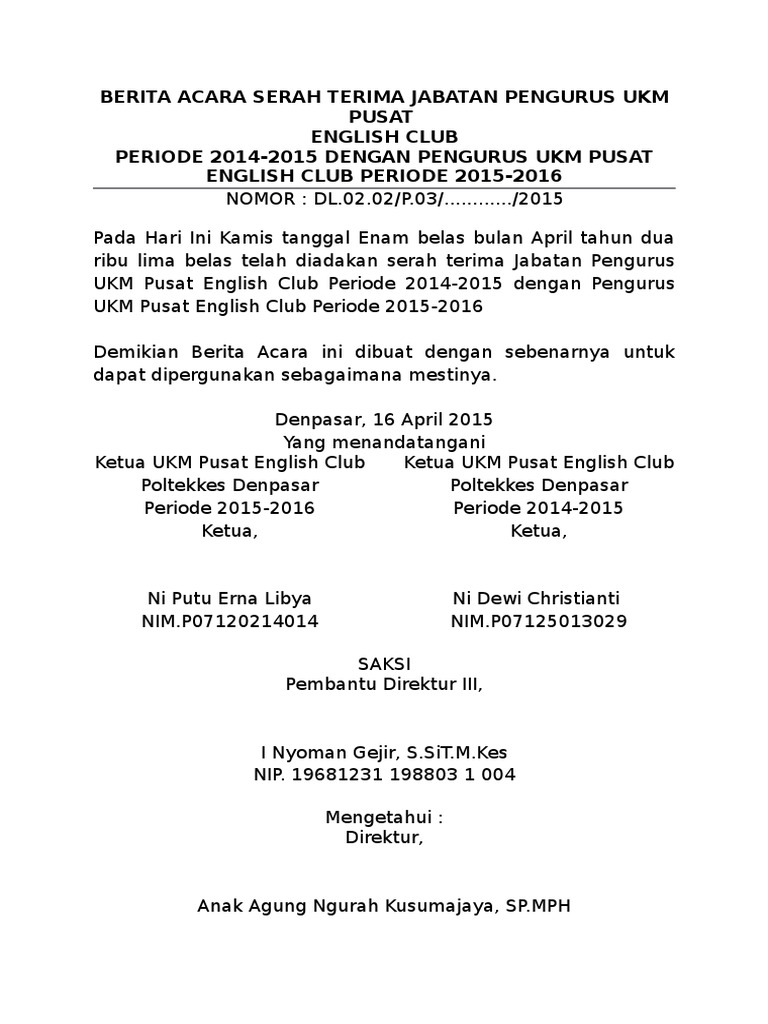 Pelantikan Contoh Surat Kenaikan Pangkat Swasta