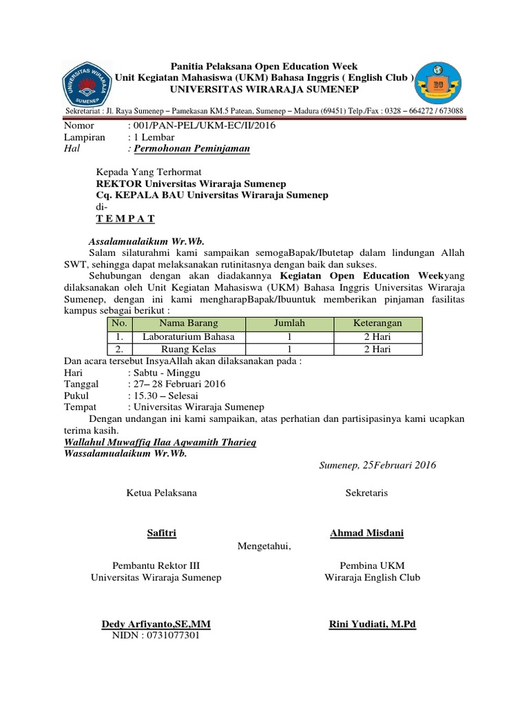 Hal Permohonan Peminjaman Assalamualaikum Wr Wb