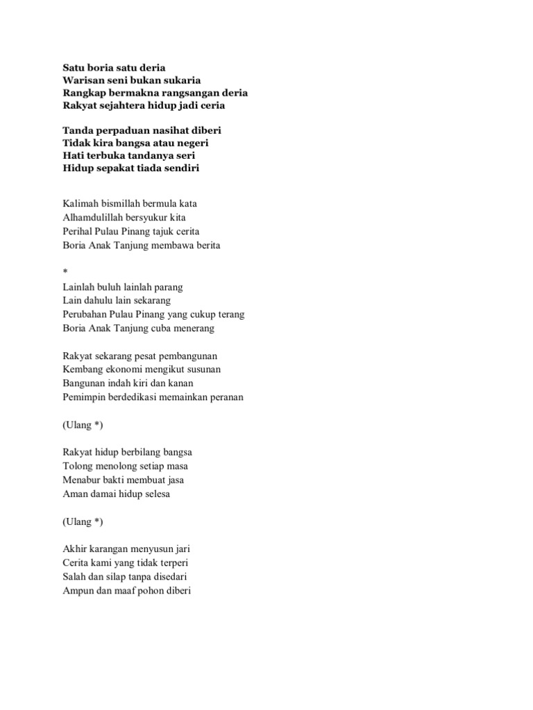 Lagu Negeri Pulau Pinang Wikipedia Bahasa Melayu Ensiklopedia Bebas