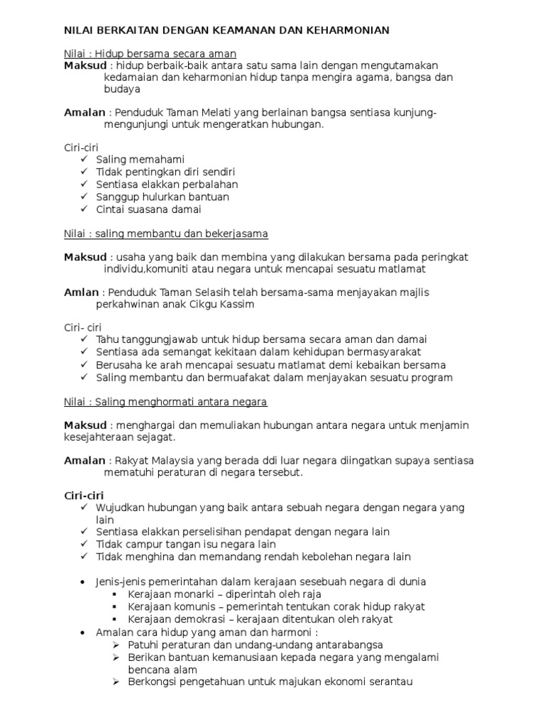 Nilai Berkaitan Dengan Keamanan Dan Keharmonian