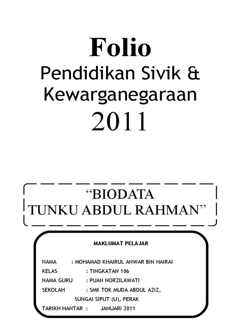 Contoh Biodata Tunku Abdul Rahman Natal 7