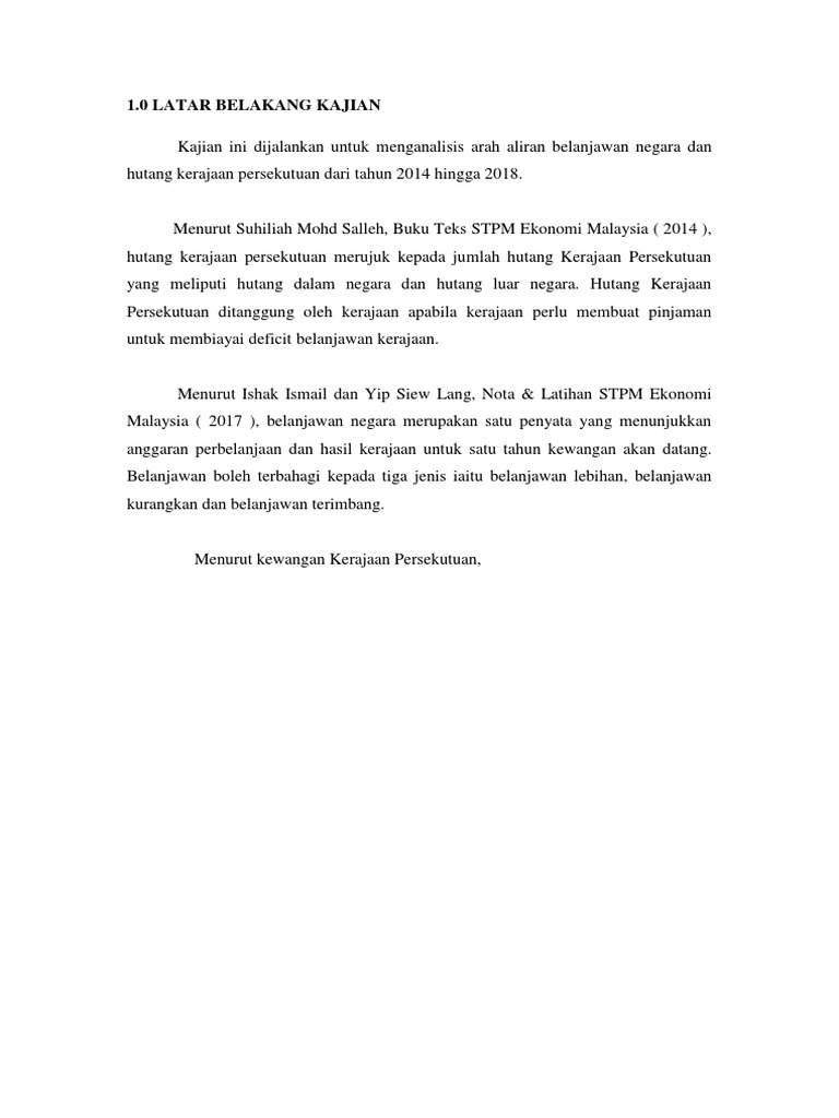 Latar belakang hutang kerajaan persekutuan. Perbelanjaan pentadbiran atau keperluan semasa kerajaan dan bersifat berulang setiap tahun. Pembentukan awal voc dimulai dengan kedatangan orang eropa melalui jalur laut vasco da gama pada tahun 1497 1498 yang berlayar dari eropa ke india melalui tanjung harapan di ujung selatan afrika yang membuat tidak adanya persaingan dengan pedagang timur tengah. Dengan bangkrutnya voc bisa dilihat dengan buruknya serikat dagang voc seperti adanya kekosongkan kas serta terjadi menumpuknya hutang perusahaan. Kebangkrutan voc membuat voc dihapus pada tahun 1799 dan pemerintahan di nusantara langsung diserahkan kepada pemerintah kerajaan belanda pada waktu itu.