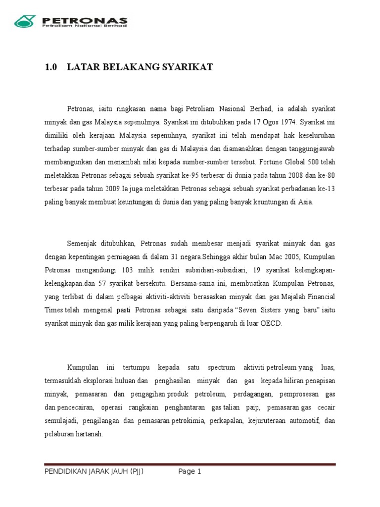 Latar Belakang Syarikat Petronas Pdf Document