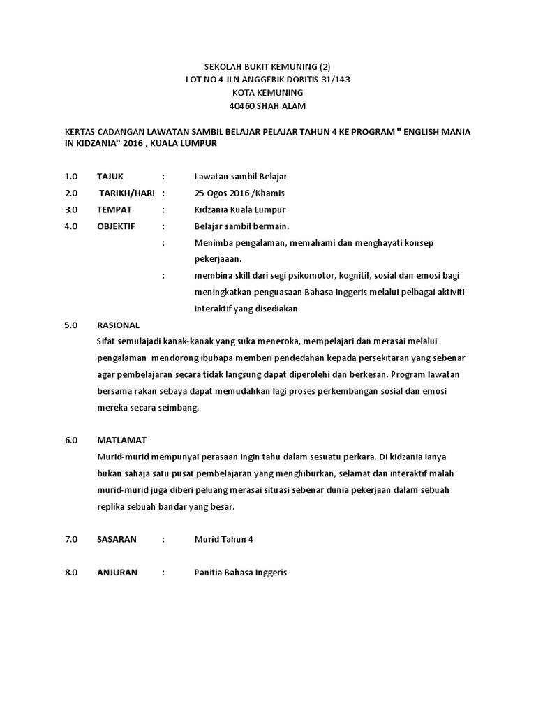 Doc Kertas Kerja Cadangan Program Lawatan Sambil Belajar Ke Shah