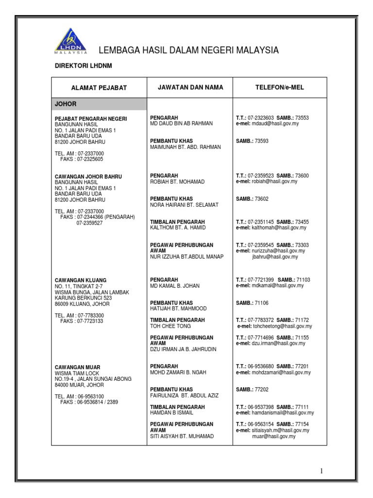 Malaysia Central Directions Lembaga Hasil Dalam Negeri Ldhn