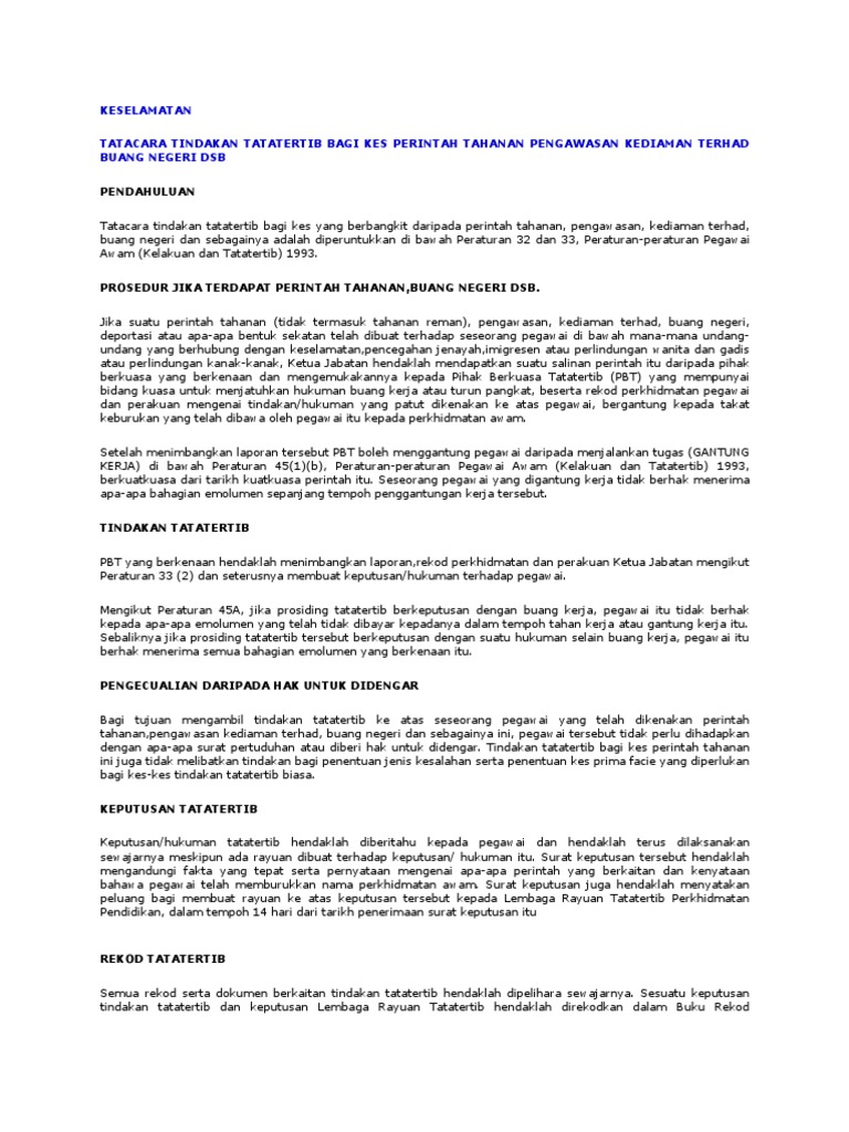 Peraturan peraturan lembaga tatatertib perkhidmatan awam negeri sembilan 1996 kaedah kaedah lembaga rayuan tatatertib suruhanjaya perkhidmatan awam 1994 peraturan peraturan pegawai awam pelantikan kenaikan pangkat dan penamatan perkhidmatan 2005. A 395 1993 dan peraturan peraturan lembaga tatatertib perkhidmatan awam 1993 p u a 396 1993 merupakan dua 2 rujukan utama dalam menguruskan tindakan tatatertib perkhidmatan awam. Kebenaran keluar negeri.