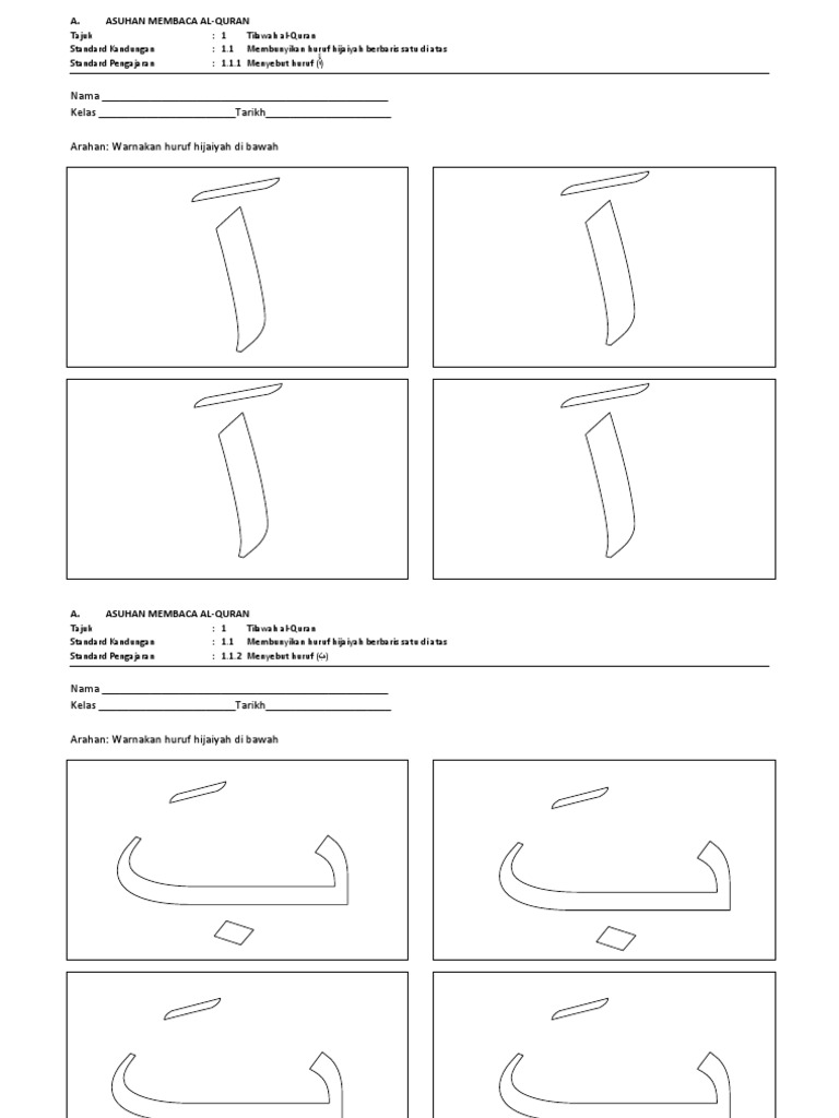Lembaran Kerja Hijaiyah Berbaris Atas Pendidikan Islam Ppki Kssr Tahun 1 Pdf Document