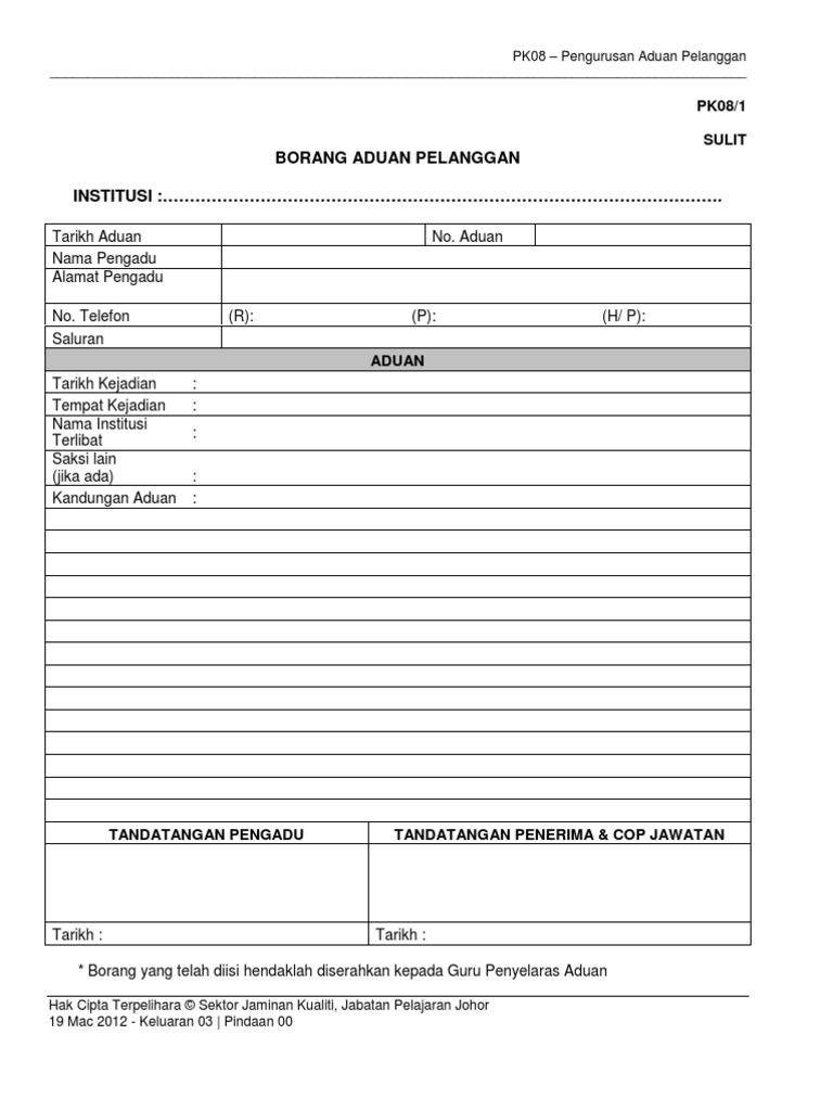 Pk 08 1 Borang Aduan Pelanggan