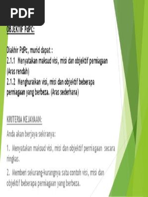 Penetapan visi misi dan objektif perniagaan maksud visi misi dan objektif perniagaan setiap organisasi pern.