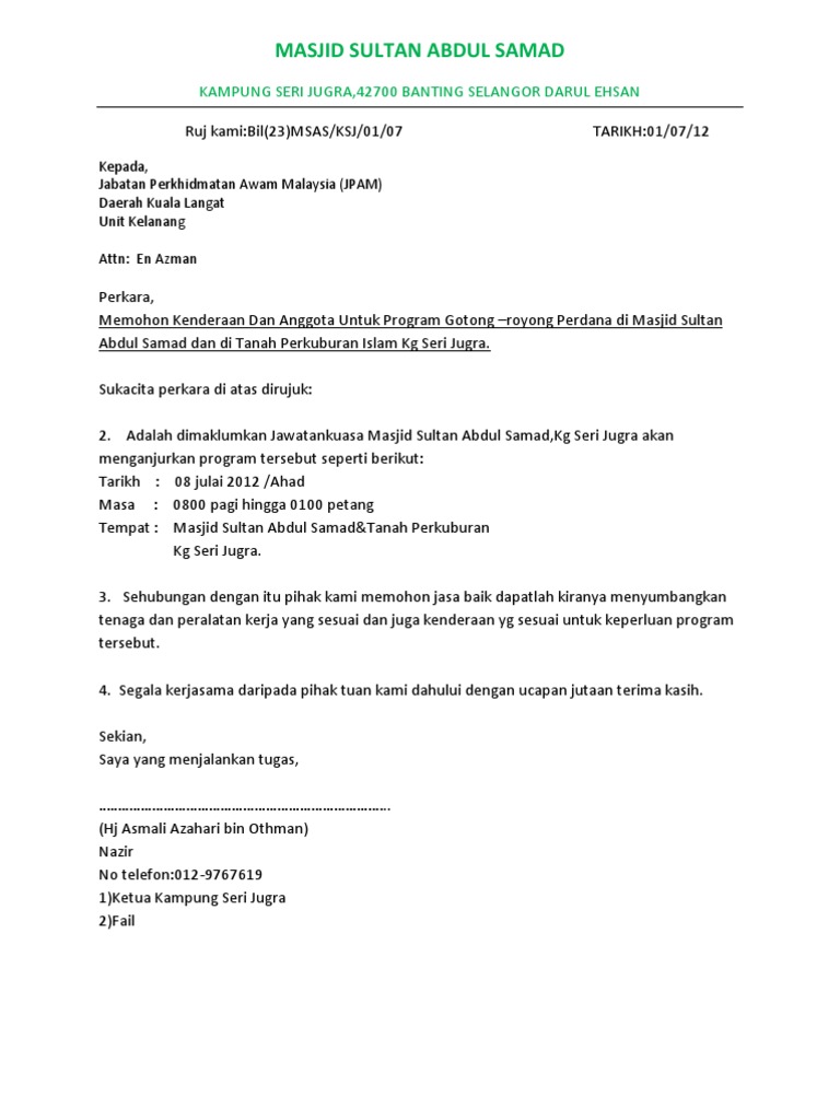 Memohon Contoh Surat Rasmi Permohonan Tanah