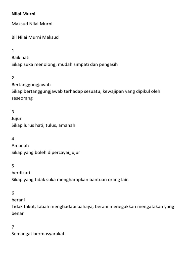 Senarai Nilai Murni Dan Maksudnya Bahasa Melayu