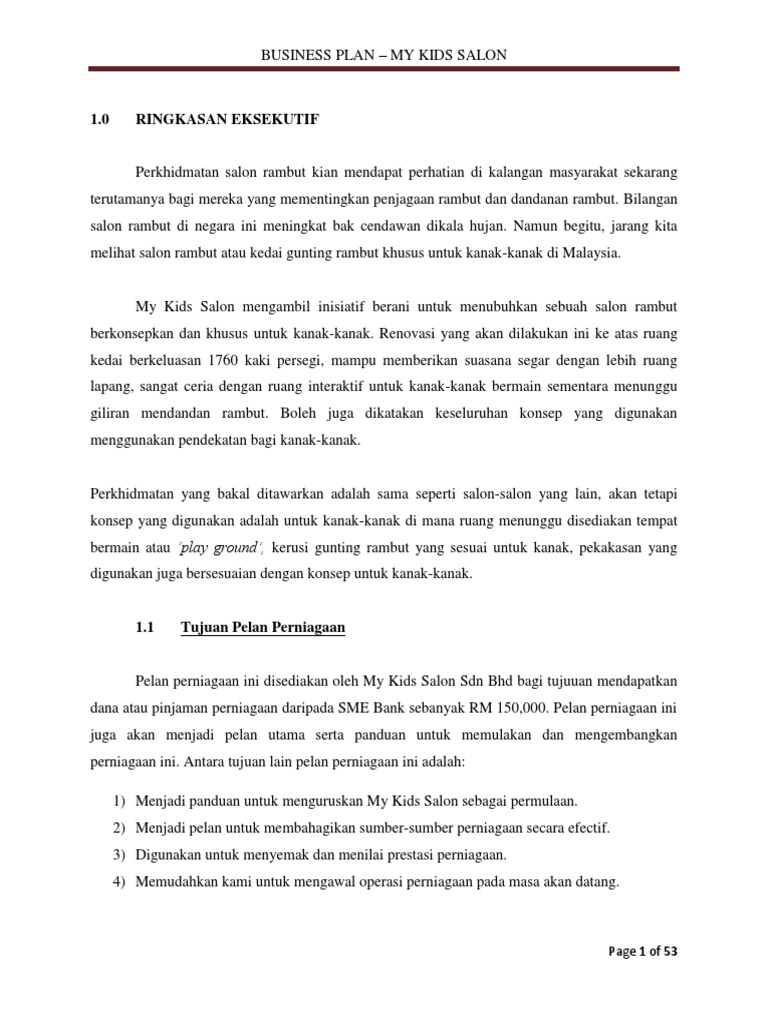 Pelan Perniagaan 1f1s Salon Rambut Lelaki