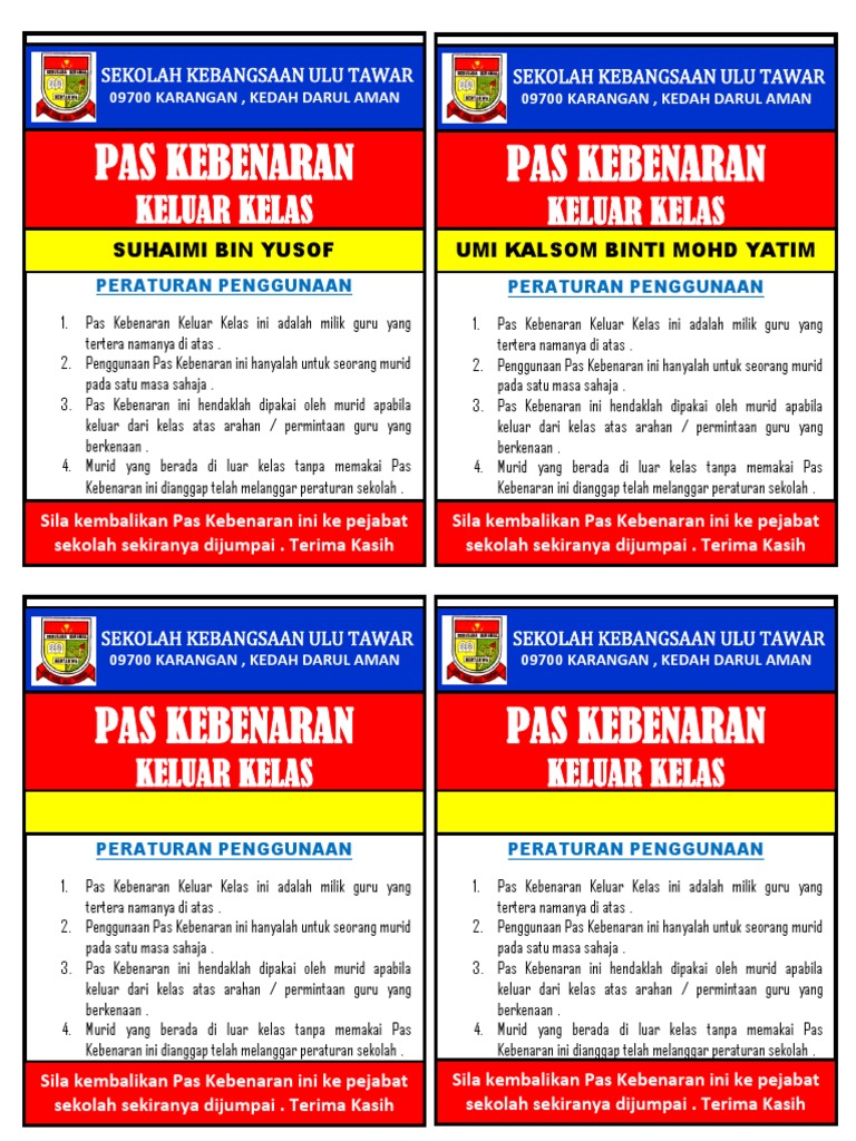 Contoh Pas Kebenaran Keluar Kelas