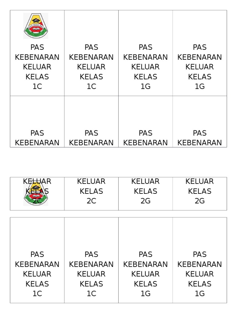 Pas Kebenaran Keluar Kelas Pas Keluar One Naufal Printing
