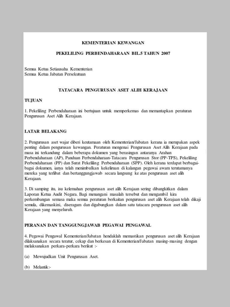 Pekeliling Perbendaharaan Pp Bil 5 Tahun 2007 Tatacara
