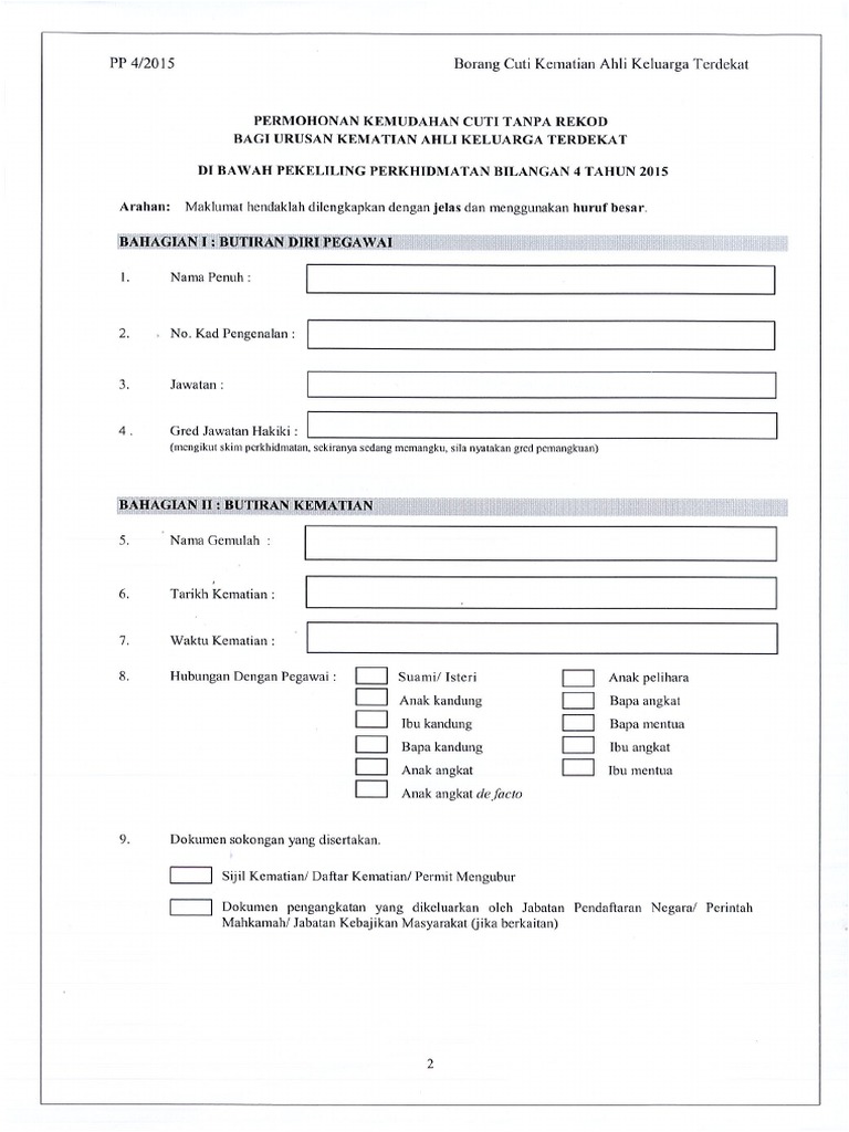 Borang Cuti Kematian Keluarga
