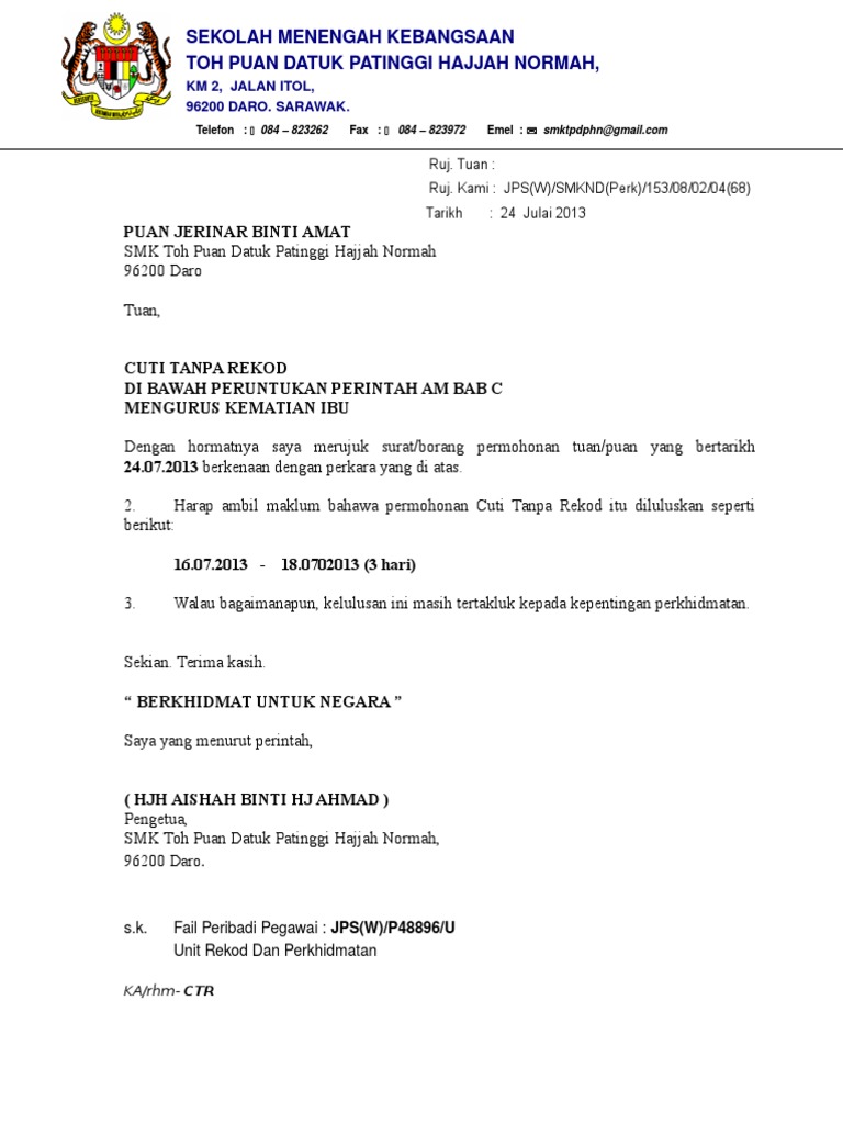Pekeliling Cuti Tnpa Rekod Kematian Keluarga Terdekat Pdf