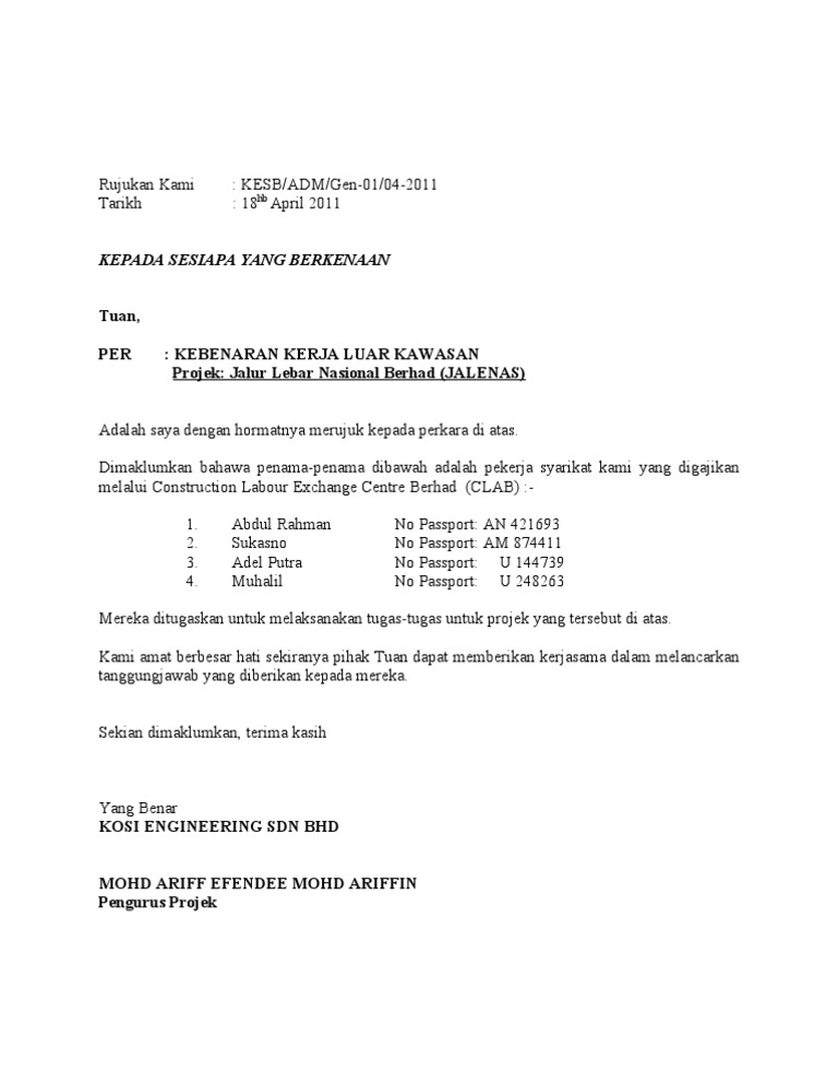 Pekerja Asing Contoh Surat Permohonan Pas Lawatan