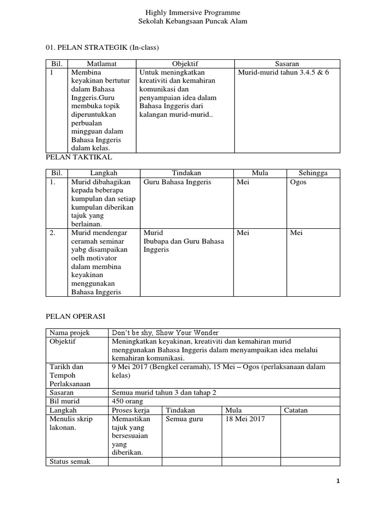 Pelan Strategik Taktikal Amp Operasi Highly Immersive Programme