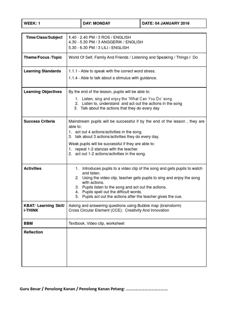 1 2 Minit Mesyuarat Panitia Bi 1st Lesson Plan English