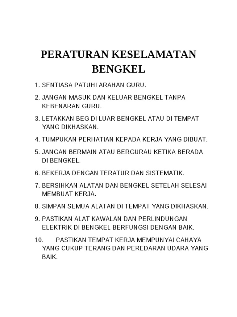 Peraturan Keselamatan Bengkel