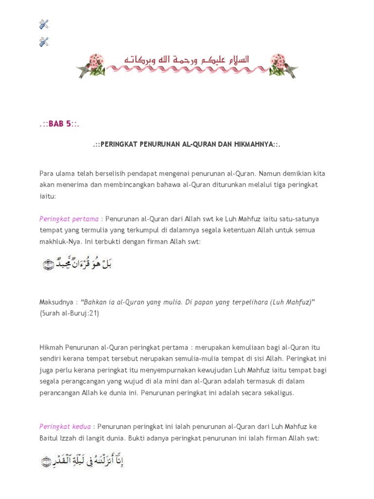 Penurunan Al Quran Handout Pdf Document