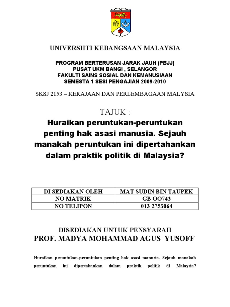 Huraikan Peruntukan Peruntukan Penting Hak Asasi Manusia