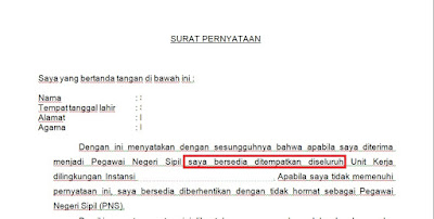 Contoh Surat Pernyataan Cpns Bersedia Ditempatkan Dimana Saja