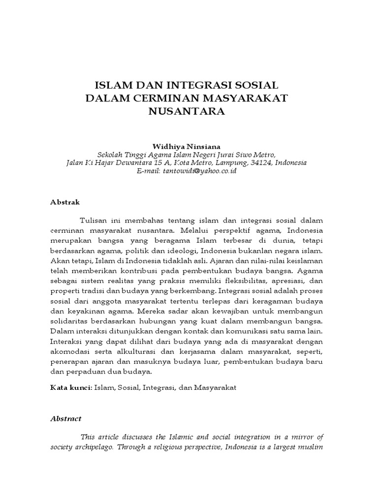 Islam Dan Integrasi Sosial Dalam Cerminan Masyarakat Nusantara