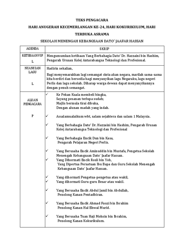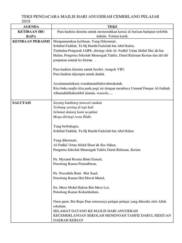 Teks Pengacara Majlis Hari Anugerah Kecemerlangan