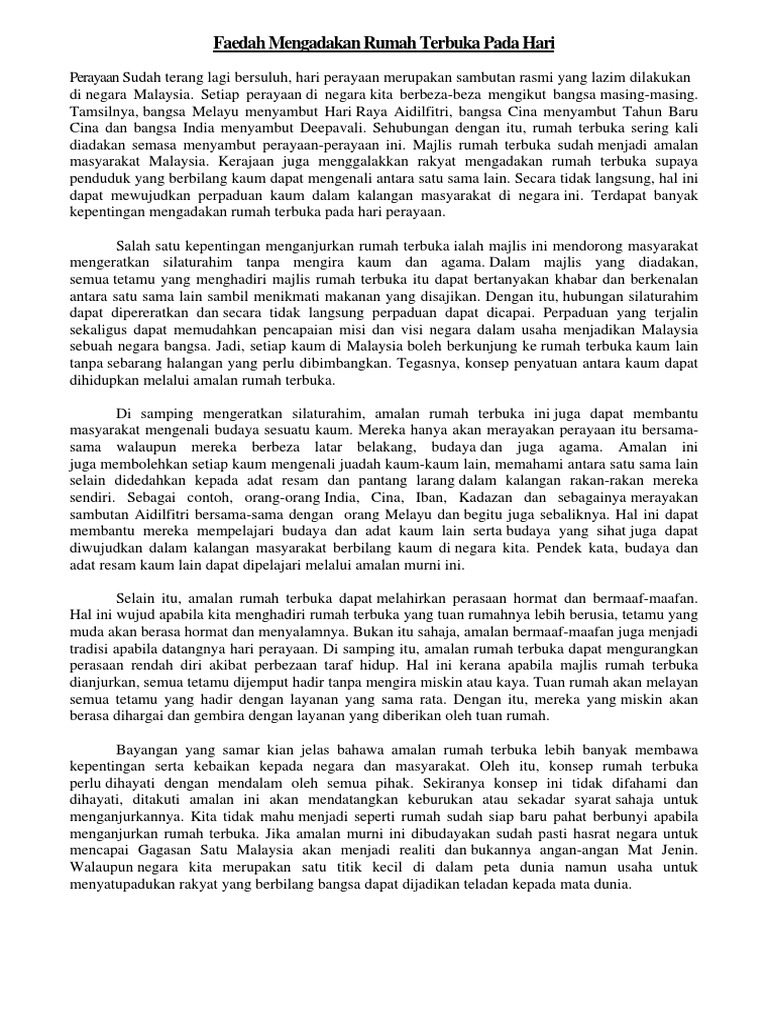 Doc Karangan Cemerlang Spm Kebaikan Amalan Rumah Terbuka Najat