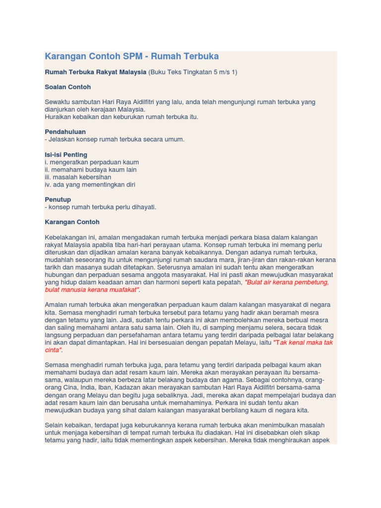 Laman Bahasa Melayu Spm Karangan Kepetingan Rumah Terbuka Di Malaysia