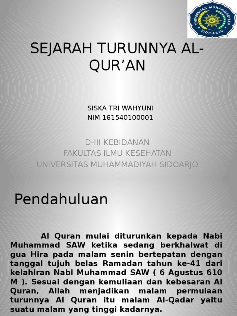 Sejarah Turunnya Al Qur An Pptx