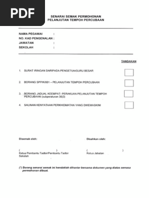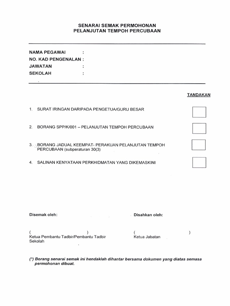 Senarai Semak Permohonan Pelanjutan Tempoh Percubaan