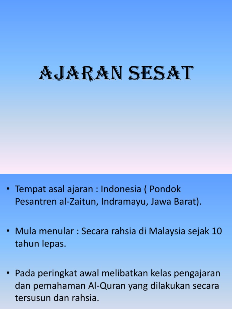 10 ajaran sesat yang masih aktif di malaysia. Ajaran taslim diasaskan pada tahun 1870 an oleh haji muhammad bin shafie yang juga dikenali sebagai haji muhammad matahari bermula di kampung seronok pulau pinang. Senarai kumpulan ajaran sesat di malaysia 6 24 2011 12 46 00 pm suria lekatlekit 15 comments kewujudan ajaran sesat ini mungkin berpunca daripada golongan orang orang sesat iaitu mereka yang tidak berpengetahuan agama kerana tidak berusaha untuk mempelajarinya atau orang berpengalaman agama yang tidak betul kerana dipelajari dengan tidak. Ajaran taslim atau ajaran haji ahmad muhammad matahari.