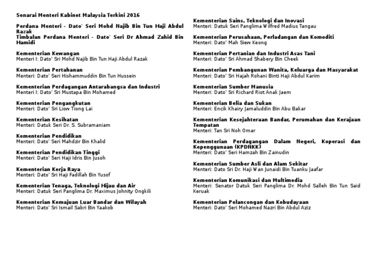 Semakan Bsh Malaysia On Twitter Senarai Menteri Malaysia 2016