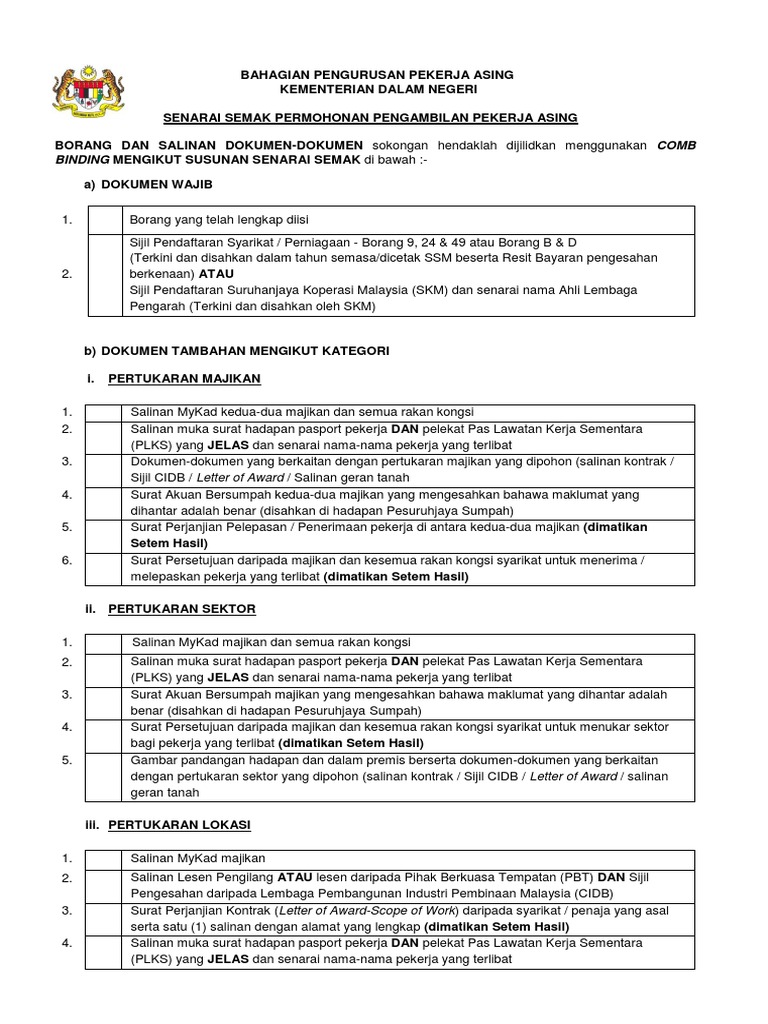 Kdn Senarai Semak Permohonan Perkerja Asing Download Pdf