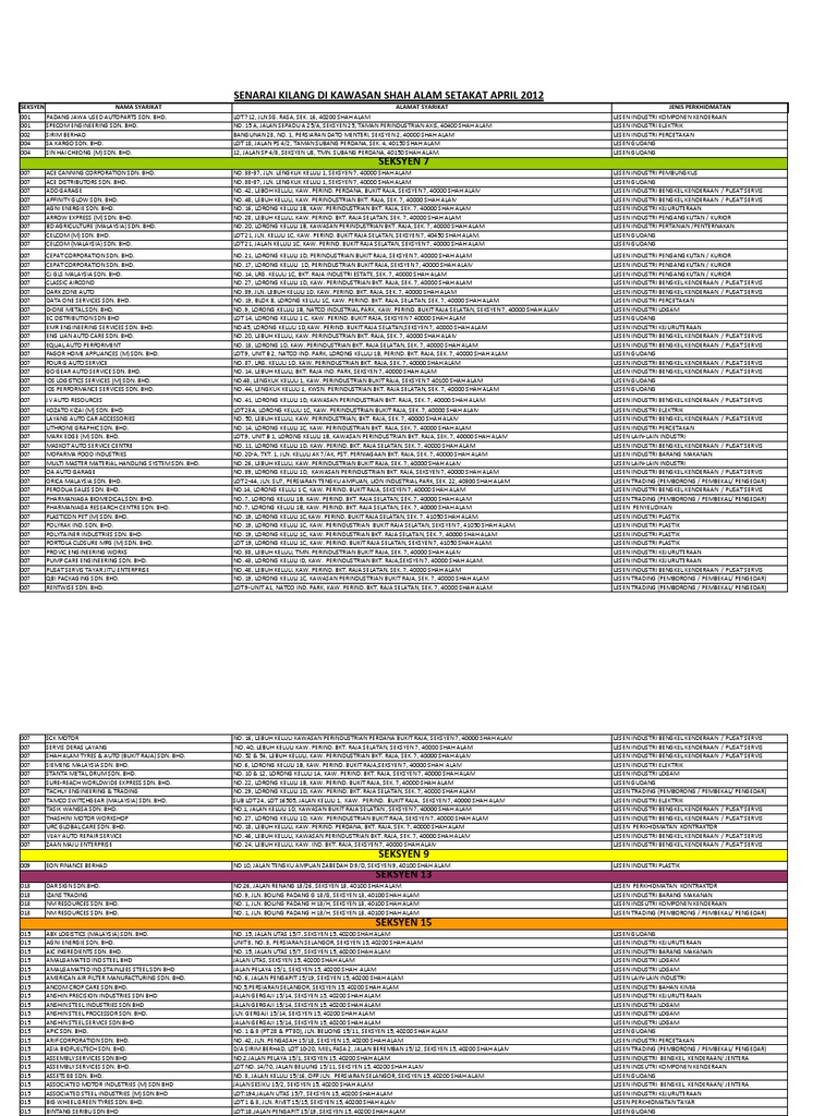 Senarai Syarikat Program A œsyarikat Bumiputera Senarai Syarikat