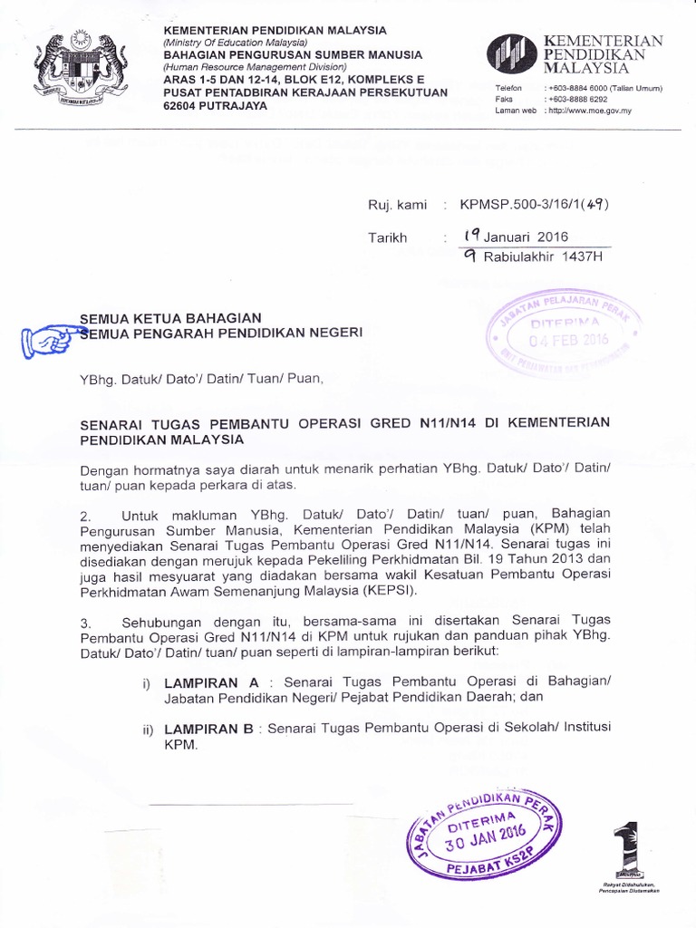Senarai Tugas Pembantu Operasi Gred N11 N14 Di Kpm