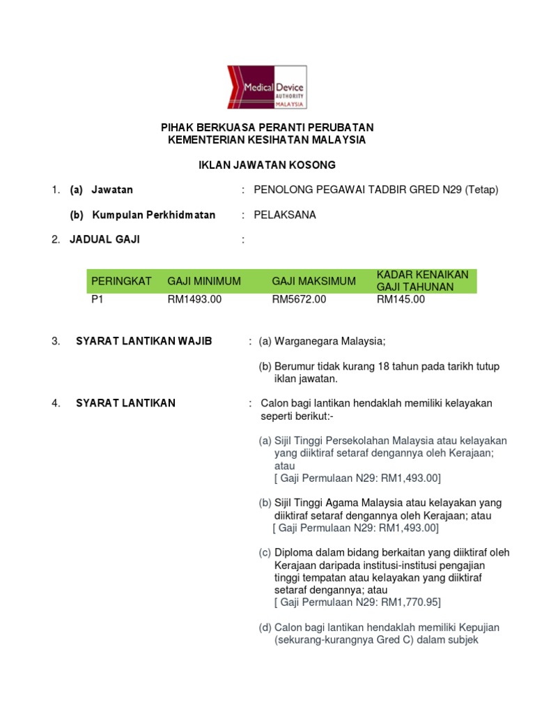 Syarat Lantikan Penolong Pegawai Tadbir Gred N29