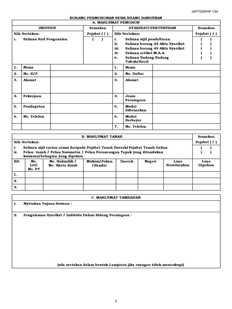 Borang Sewa Ruang Bangunan
