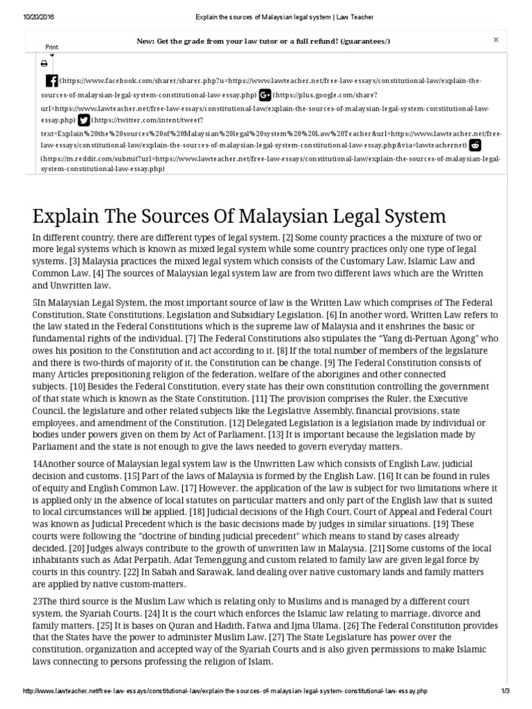 Explain The Sources Of Malaysian Legal System Law Teacher